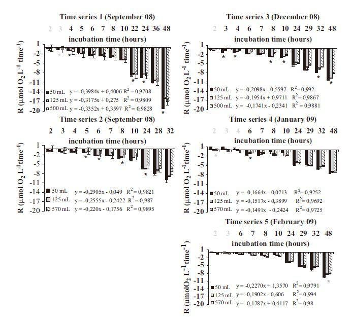 海洋中浮游生物的生產(chǎn)與呼吸平衡的準(zhǔn)確測定對于碳預(yù)算和全球變化預(yù)測非常重要。由于在不同尺度上測量這種平衡存在分歧,導(dǎo)致了對海洋營養(yǎng)狀態(tài)的爭議。尤其是在寡營養(yǎng)的開放海域中,24小時的孵化實(shí)驗(yàn)經(jīng)常顯示出凈異養(yǎng)平衡,但類似的困難也出現(xiàn)在沿海系統(tǒng)中。這些結(jié)果因?yàn)榭赡艽嬖诘拈L期孵化時間和所謂的“瓶子效應(yīng)”而受到批評。為了研究孵化時間和瓶子體積對浮游生物凈代謝測量的影響,在西北伊比利亞沿海系統(tǒng)進(jìn)行了一系列時間序列實(shí)驗(yàn)。通過標(biāo)準(zhǔn)體外溶解氧濃度變化和(2)氧氣微傳感器每20秒測量一次的氧濃度下降,同時獲得了浮游生物群落呼吸率的測量結(jié)果。本研究結(jié)果反駁了24小時暗瓶孵化在125毫升體積下系統(tǒng)性偏見的說法,并強(qiáng)調(diào)了氧氣微傳感器在研究自然海洋浮游生物呼吸動態(tài)方面的有效性。本研究結(jié)果對支持使用unisense氧氣微呼吸系統(tǒng)作為測量沿海海洋生態(tài)系統(tǒng)中浮游生物DCR的準(zhǔn)確工具,并表明它們是評估呼吸率線性的可行選項(xiàng)。對于改進(jìn)海洋生態(tài)系統(tǒng)中浮游生物呼吸作用的測量方法和理解其在全球碳循環(huán)中的作用具有重要意義。