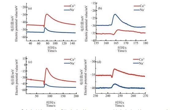 圖7 ZnO NPs處理解凍后原生質體破裂后Ca2+、Na+信號脈沖圖注:(a)~(d)中ZnO NPs濃度分別為30、50、70和90 mg·L-1。