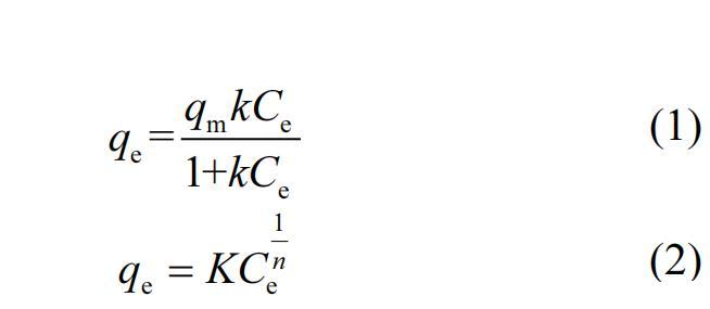 采用Langmuir(1)和Freundlich(2)模型來擬合吸附試驗數據: