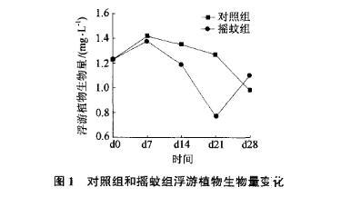 圖1對照組和搖蚊組浮游植物生物量變化