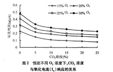 實際應用時,預先將定標數據(I一0:濃度之間的關系和恒定不同O2濃度下的I一CO2濃度關系)輸入計算機擬合出相應的經驗公式并儲存,再輸入現場采集的響應信號(I。和I),遂可求出并顯示CO2:氣體組分的濃度(或分壓)。