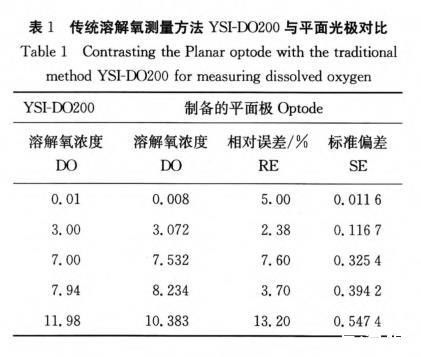 表1傳統溶解氧測量方法YSI-DO200與平面光極對比