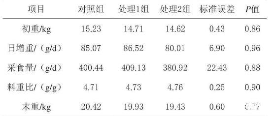 由表4可知,處理2組尿液氮濃度顯著低于對照組和處理1組(P<0.05)。各組對氮攝入量、總氮排泄量和氮沉積量的影響無顯著差異(P>0.05)。
