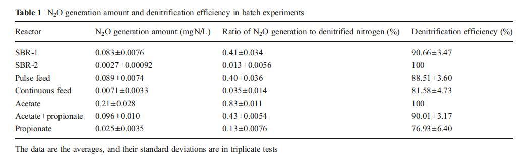 表1批次實驗中N?O生成量與反硝化效率
