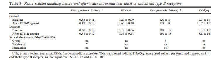 糖尿病大鼠的TNa增加,而與腎臟鈉處理有關的所有其他參數在兩組中相似(表3)。ETB-R激活增加了兩組大鼠的尿鈉排泄量。