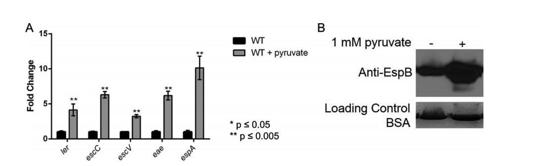 丙酮酸對LEE基因轉錄和EspB分泌的影響。