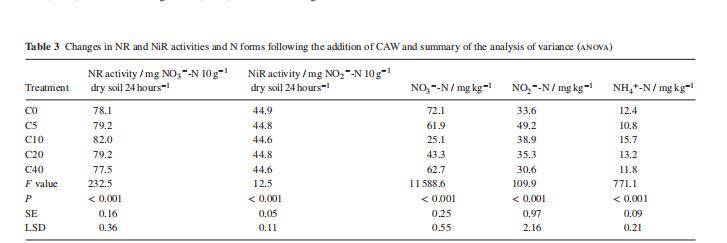 CAW對蘋果根區土壤NR和NiR活性及氮形態的影響
