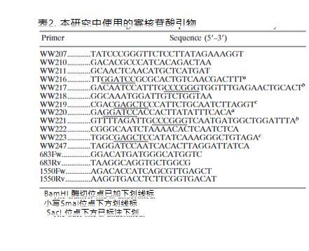 使用引物對(duì)WW220/WW221和WW222/WW223(圖1B和表2),以M.catarrhalis ATCC 43617基因組DNA為模板,通過PCR擴(kuò)增包含nsrR ORF立即5'和3'核苷酸序列的DNA片段。這兩個(gè)DNA片段用作重疊延伸PCR的模板,使用引物WW220和WW223。所得擴(kuò)增子命名為DNSRR,包含一個(gè)內(nèi)部SmaI位點(diǎn),用BamHI和SacI消化,然后連接到用相同限制酶消化的M.catarrhalis質(zhì)粒克隆載體pWW115中。連接反應(yīng)混合物用于電轉(zhuǎn)化M.catarrhalis ETSU-9。從一個(gè)壯觀霉素抗性克隆中分離的質(zhì)粒命名為pWW123。從pAC7擴(kuò)增的kan盒按先前所述克隆到pWW123的DNA插入片段中的SmaI位點(diǎn)。所得重組質(zhì)粒命名為pWW124,其kan盒以與缺失的nsrR基因相同的方向插入,用作PCR擴(kuò)增模板,使用引物WW220和WW223。所得PCR產(chǎn)物命名為DNSRR-KAN,用于轉(zhuǎn)化M.catarrhalis野生型菌株O35E、7169和ETSU-9??敲顾乜剐赞D(zhuǎn)化子通過錨定PCR和核苷酸序列分析確認(rèn)為nsrR突變體(圖1C)。通過使用上述DNSRR DNA片段轉(zhuǎn)化卡那霉素抗性的O35E nsrR突變體,構(gòu)建了一個(gè)卡那霉素敏感的nsrR突變體。一個(gè)所得卡那霉素敏感轉(zhuǎn)化子通過核苷酸序列分析確認(rèn)為nsrR缺失突變體,命名為O35E△nsrR。