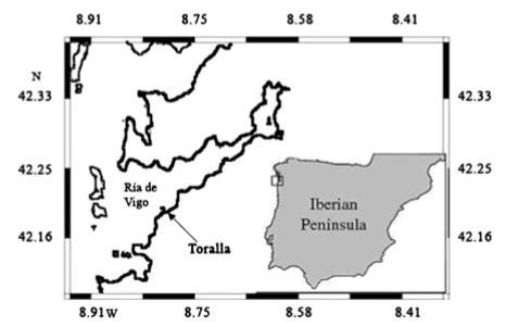在維戈河口(圖1)進(jìn)行了五個(gè)時(shí)間序列實(shí)驗(yàn),用水取自Toralla碼頭,時(shí)間跨越大洋涌升季節(jié)末期(夏末)和下沉流季節(jié)(秋季和冬季)的不同時(shí)間。