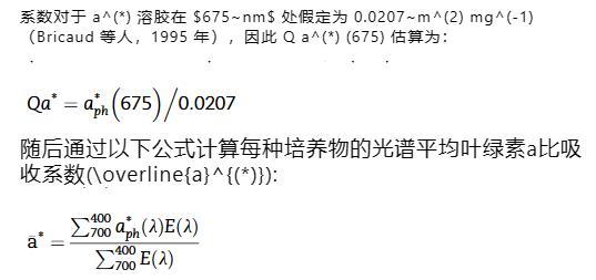 然后每個(gè)培養(yǎng)物的光譜平均葉綠素a比吸收系數(shù)計(jì)算如下: