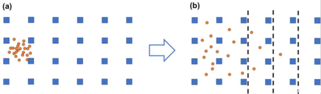為了理解擴散傳輸方程,理解化學物質如何通過分子擴散傳輸?shù)臋C制非常重要。布朗運動可以定義為由熱能驅動的單個分子的運動。雖然任何一個分子的確切路徑無法預測,但我們可以量化布朗運動對系統(tǒng)中所有分子傳輸?shù)膬粜@纾绻\動是隨機的,則均勻的分子沒有凈變化;然而,如果引入一種新化學物質,分子的隨機運動將把它們帶離初始位置。分子從其初始位置的這種隨機運動由菲克第一定律描述,其中流體中的濃度變化隨距注入點的距離而變化。