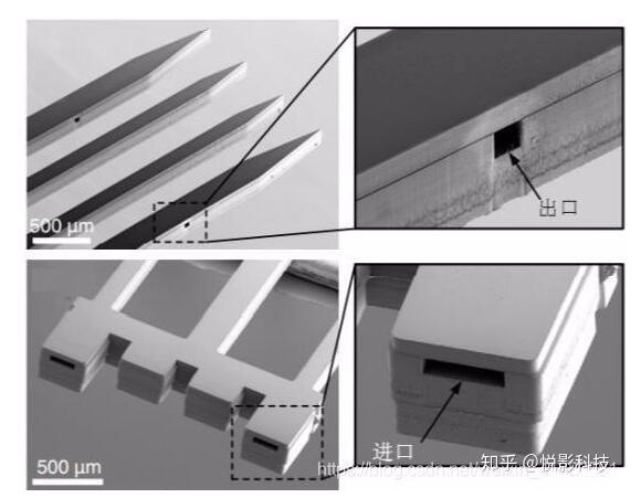 隨著神經科學的快速發展,研究者對神經微電極的要求也不再僅僅局限于記錄神經元的動作電位,而是希望在滿足基本的記錄功能的基礎上,增加其他的功能。例如,集成有微流體通道的神經微電極,如下圖所示[5]。