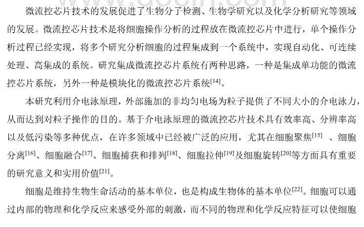 【摘要】:細胞是生物及生命活動的基本單位,利用微流控芯片技術來操縱和研究細胞,通過研究單細胞可以看出細胞異質性對機體功能和狀態(tài)的影響,研究不同單細胞的病理特征,對分析細胞代謝、細胞紊亂等細胞活動具有非常重要的意義。細胞分離和單細胞捕獲作為研究單細胞的重要手段,其在生命科學和化學分析等領域中有著廣泛應用。