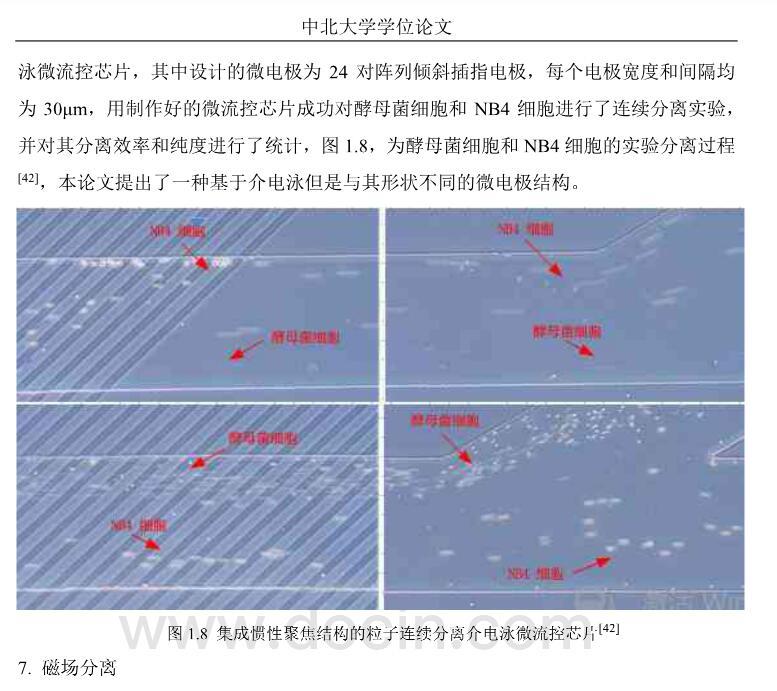 最后,搭建了用微流控芯片進行實驗的測試平臺。先用ITO微電極微流控芯片分離酵母菌細胞和聚苯乙烯小球;培養(yǎng)兩種直徑相近的人類白血病細胞(OCI-AML3細胞和THP-1細胞),通過熒光染色分別處理OCI細胞和THP-1細胞,用鉑微電極微流控芯片進行細胞分離實驗,實現(xiàn)了OCI細胞與THP-1細胞的連續(xù)分離,并對THP-1細胞進行單細胞捕獲,細胞純化率在94%以上,單細胞捕獲效率大于94%。