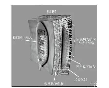 研究發現,在這些疾病中,雖然將光信號轉化為電信號的視網膜光感受細胞層退化了,但是位于其后的水平細胞、雙極細胞和神經節細胞等在一定程度上還是功能完好的。如果旁路掉光感受細胞,利用植入的假體將外部視覺信號轉化為電信號直接刺激內部的視網膜,使患者產生光幻視,便可以達到一定程度的視覺恢復。這就是采用視網膜視覺假體治療該類眼疾的基本原理。
