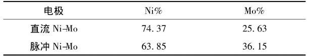 表3是能譜儀測得的鍍層元素組成的質(zhì)量百分比。由表中可以看到,脈沖電沉積得到的Ni-Mo合金鍍層中的Mo元素含量比直流電沉積要高,而鎳鉬合金鍍層的析氫性能在一定程度上是隨著鉬元素含量的增加而提高的,所以說鍍層中高M(jìn)o元素含量是脈沖電沉積能降低析氫過電位的重要原因。