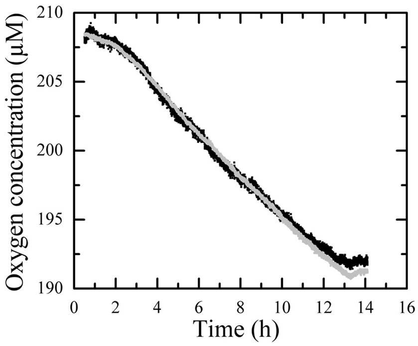 圖5、不同測量O2獲得細菌的呼吸速率的方法對比(離散呼吸法和連續呼吸法)。離散方法是根據培養開始和結束時氧濃度的差異計算出細菌相應的呼吸速率值。